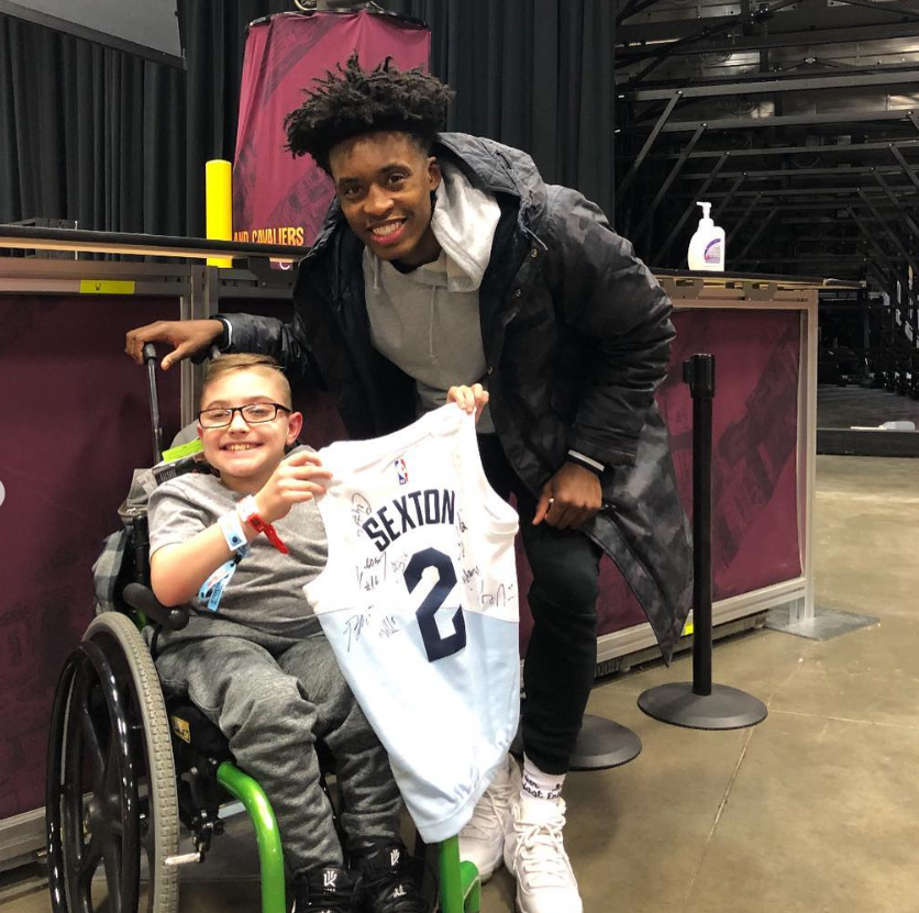 塞克斯顿晒与小球迷合影:我爱来自骑士球迷的所有支持