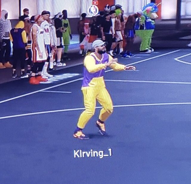 5月17日 据多位网友爆料,即将成为自由球员的凯尔特人后卫凯里-欧文今天在参与NBA 2K游戏的街球在线对战模式时为自己选择了一套湖人主题的装备。