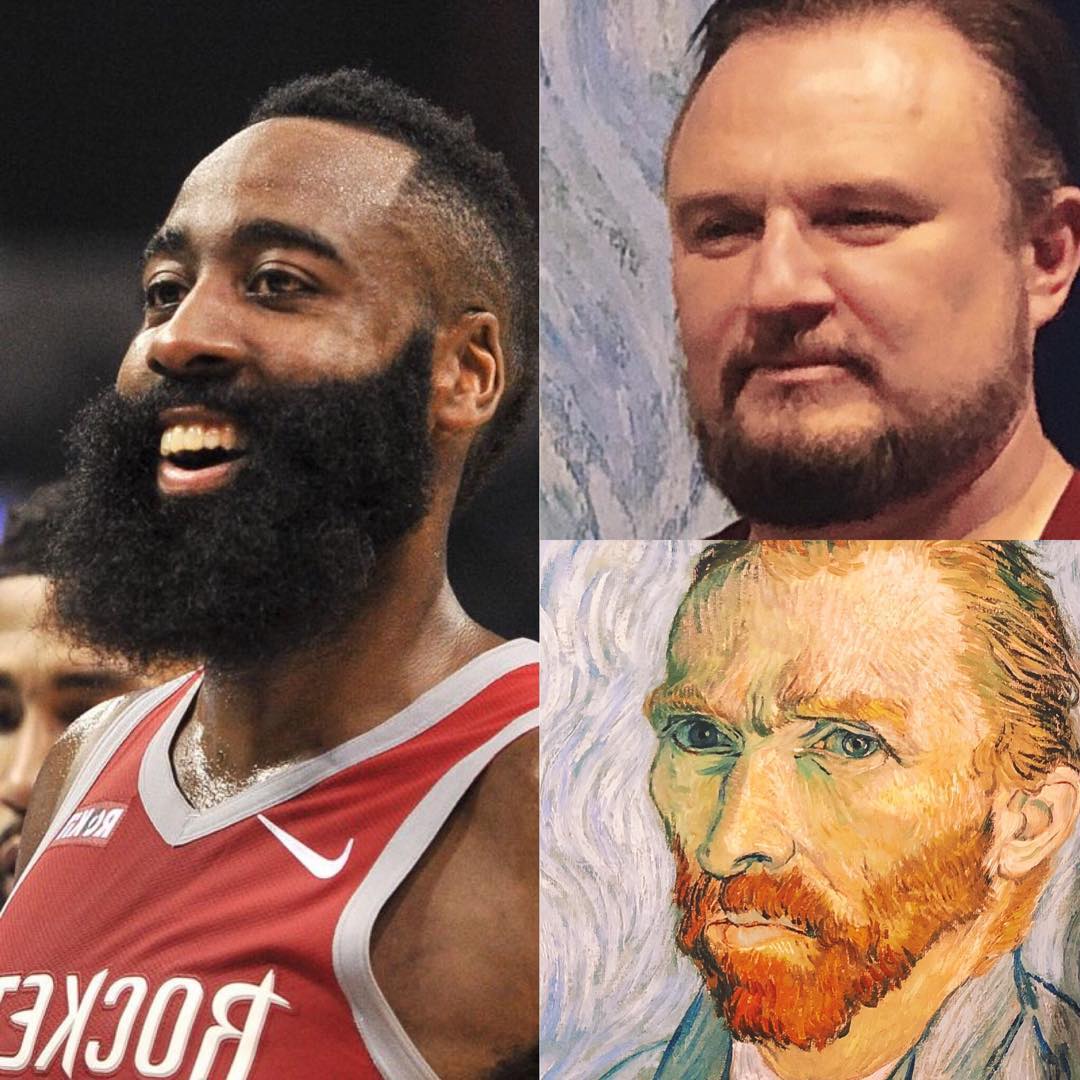 6月2日 火箭总经理达雷尔-莫雷今日在个人Instagram上晒出了自己的胡子、火箭后卫詹姆斯-哈登的胡子和著名画家梵高的胡子的照片(见新闻配图)。