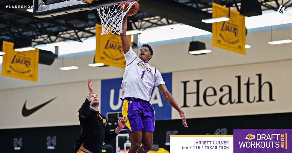 6月2日 本届热门新秀贾勒特-卡尔弗今日接受了湖人的单独试训。卡尔弗在德克萨斯理工大学的教练John A. Smith Jr.通过推特发布了一张卡尔弗今日在湖人试训现场测试垂直弹跳高度的照片。