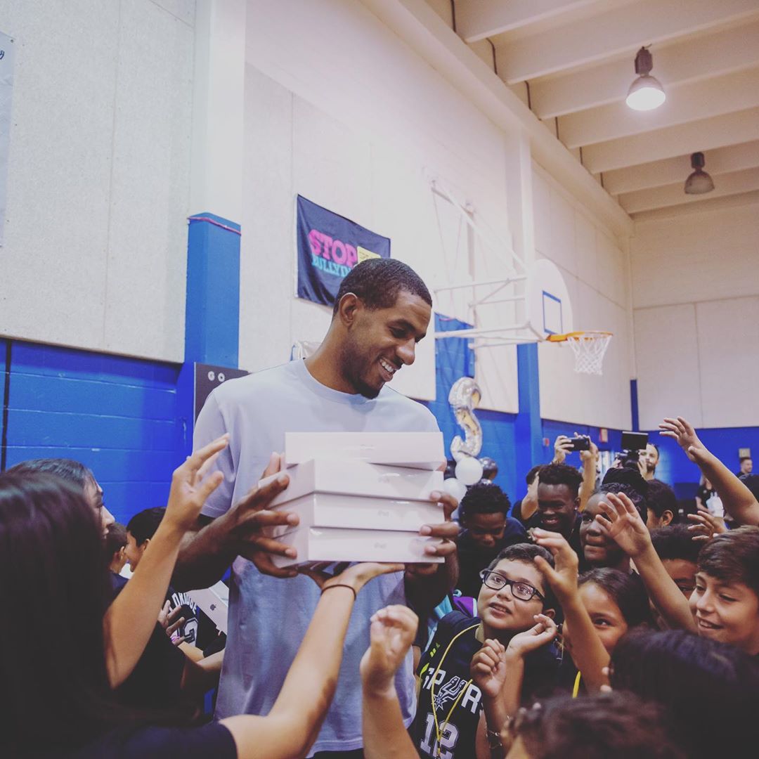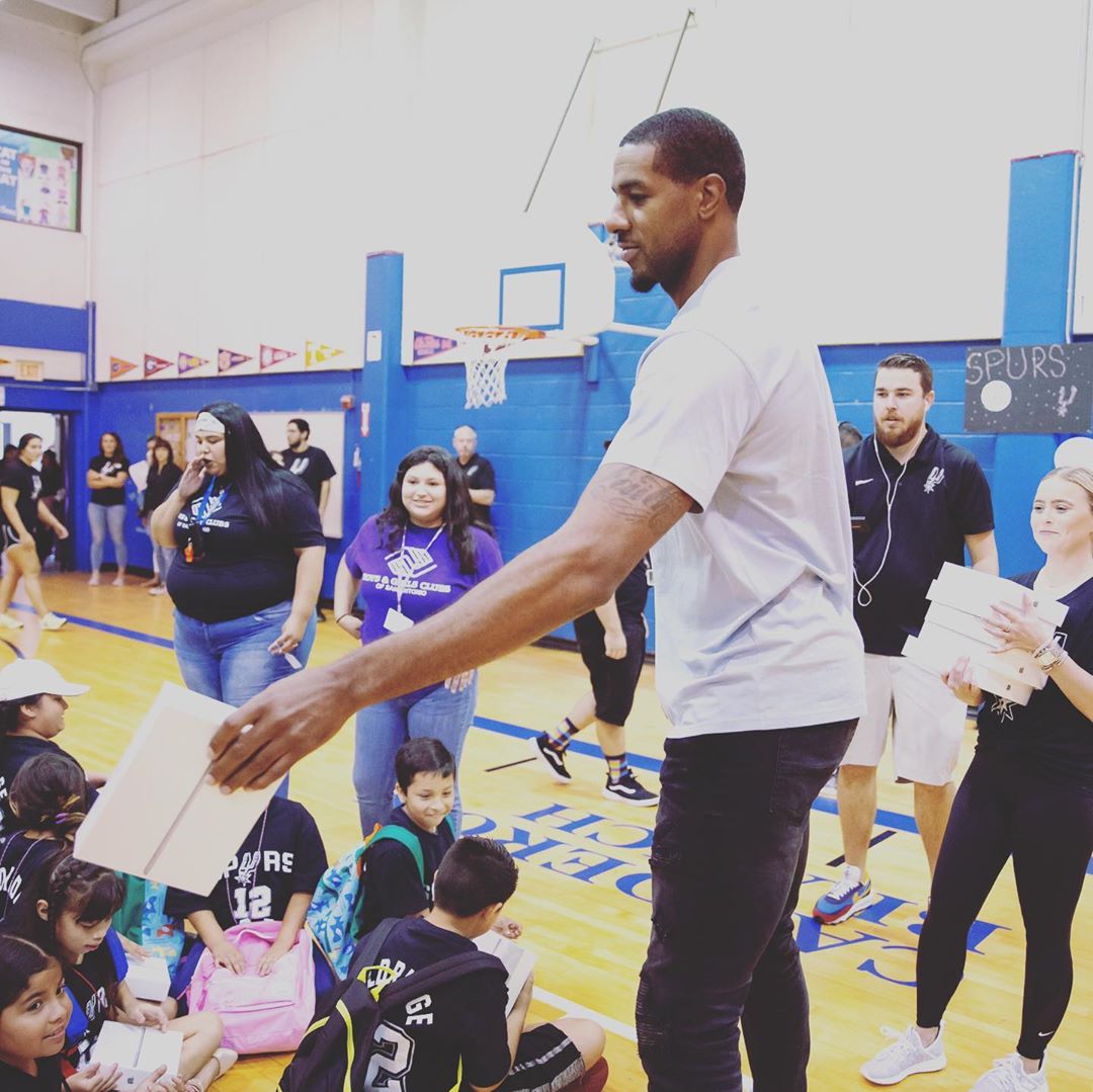 8月3日 今日,马刺球员拉马库斯-阿尔德里奇更新社交媒体Instagram晒出参加社区活动的照片。(见新闻配图)