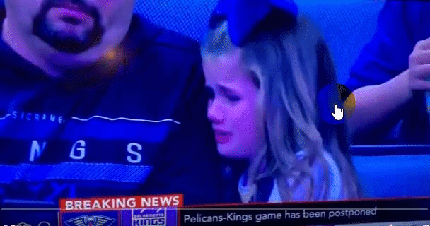 4月10日 3月12日,国王和鹈鹕的比赛因新冠病毒疫情取消。随后,现场的一位小球迷在得知本场比赛不能再进行后,不禁伤心落泪。