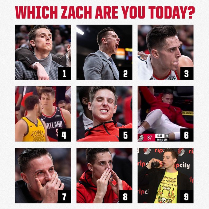 4月10日 近日,开拓者官方晒出球员扎克-科林斯的众多表情,并配文道:今天的你,是哪一位扎克呢?