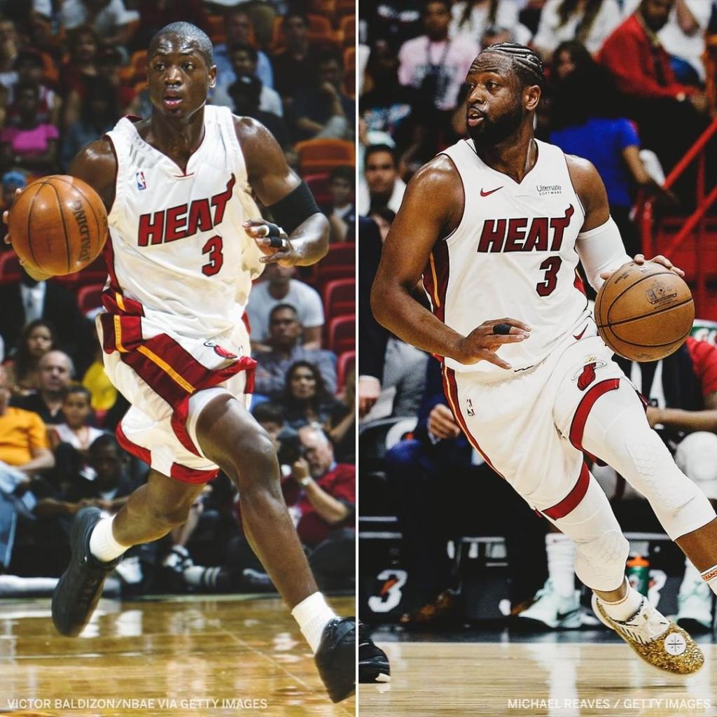 4月10日 今日,ESPN晒出了前NBA球员德维恩-韦德和德克-诺维茨基在新秀年与生涯最后一季的对比图。