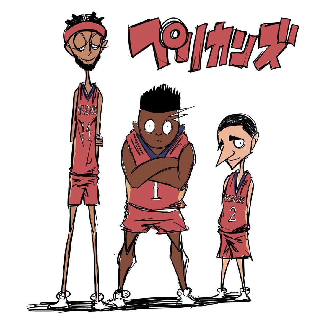 画作是来自网友Aki的作品,该作者之前的另一张关于鹈鹕和英格拉姆的作品: