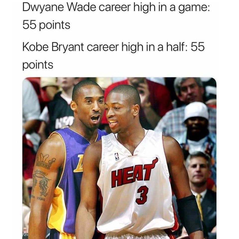 (德维恩-韦德生涯单场最高:55分 科比-布莱恩特生涯半场最高:55分)
