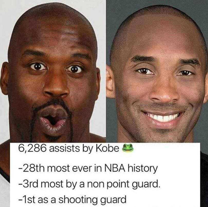 (科比生涯6286记助攻,NBA历史第28,控卫外第3,分卫第1)