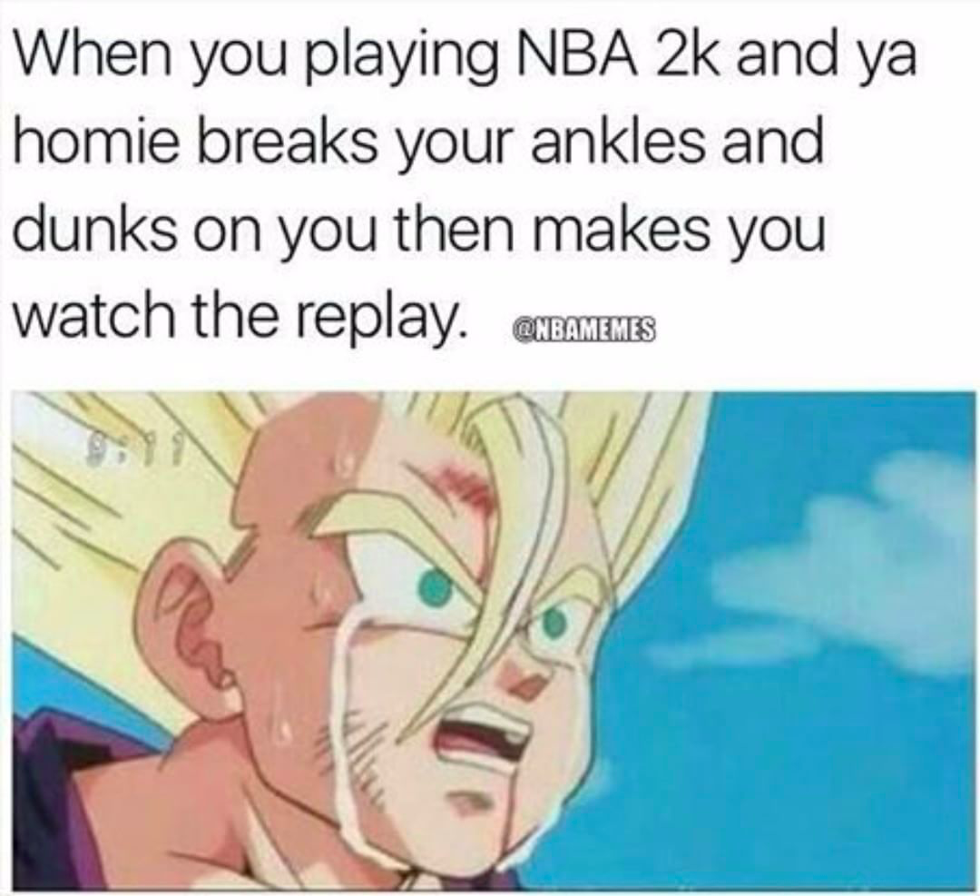 (当你在开黑2k,你的兄弟在游戏里晃断了你的脚踝并在你头上暴扣,然后还拉着你去看回放)