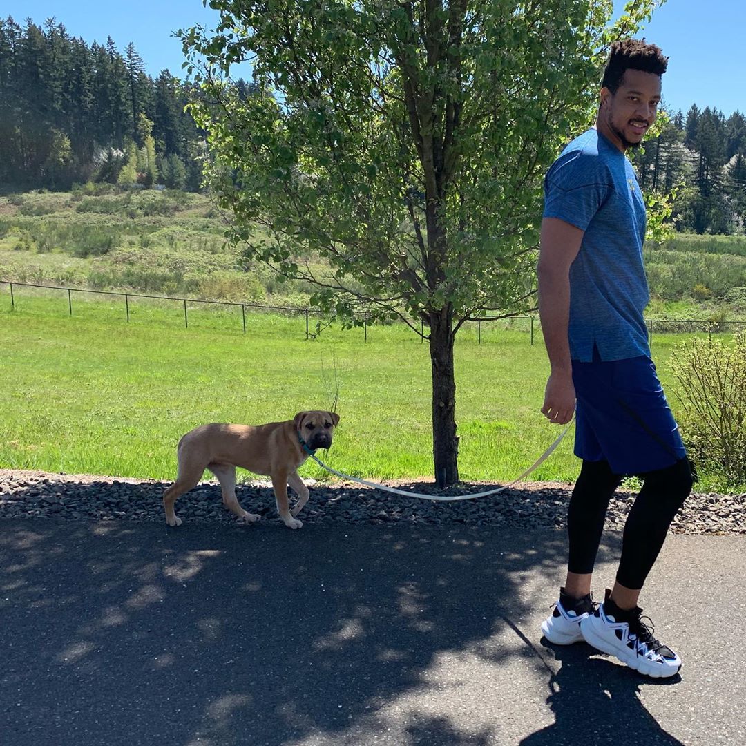 4月15日 今日,开拓者球员CJ-麦科勒姆更新了个人社交媒体Instagram,晒出外出遛狗的照片。