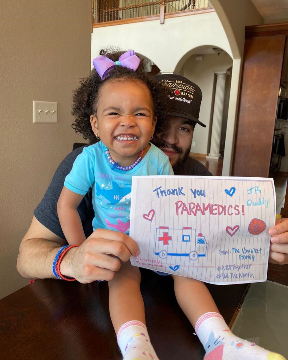 4月17日 今天,猛龙官方发布弗雷德-范弗利特和马克-加索尔的图片,向一线的医护人员表示感谢。