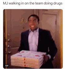 (MJ走进正在嗑药的球队更衣室时)