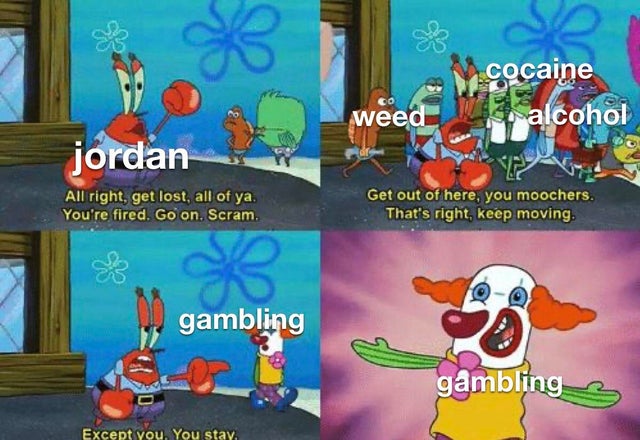 (乔丹把叶子、可卡因、酒精都赶了出去,除了赌博)