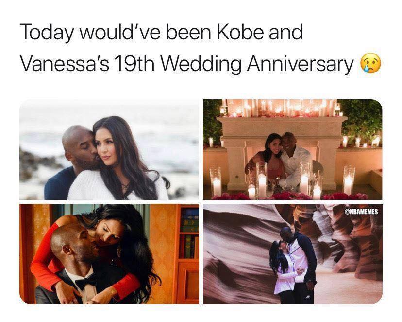 (今天本来应该是科比和瓦妮莎的第19个结婚纪念日 注:发图时间为4月19日)