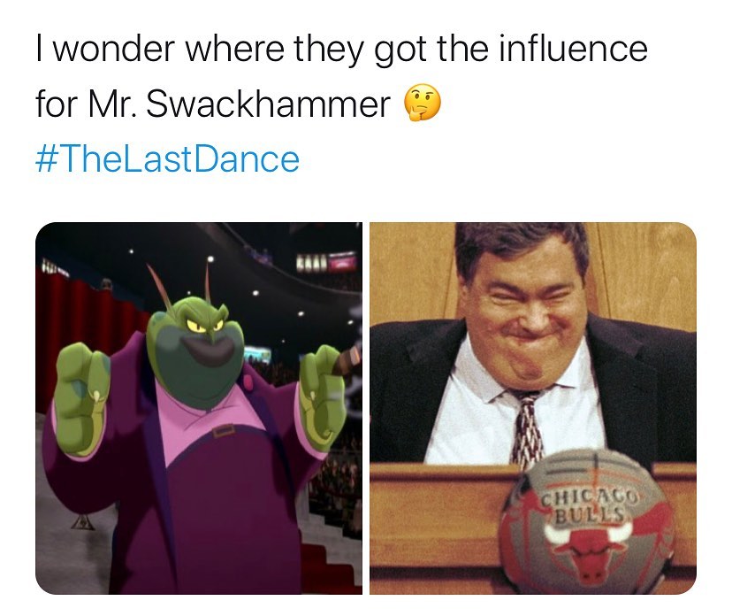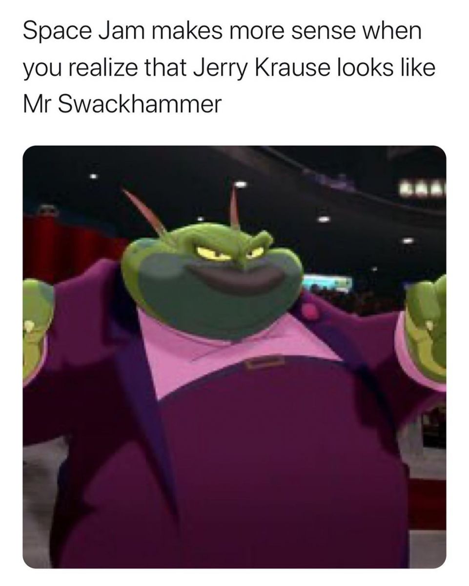 (空中大灌篮让你觉得杰里-克劳斯看上去像Mr.Swackhammerr更说得通了 注:该动画人物是空中大灌篮中的反派)
