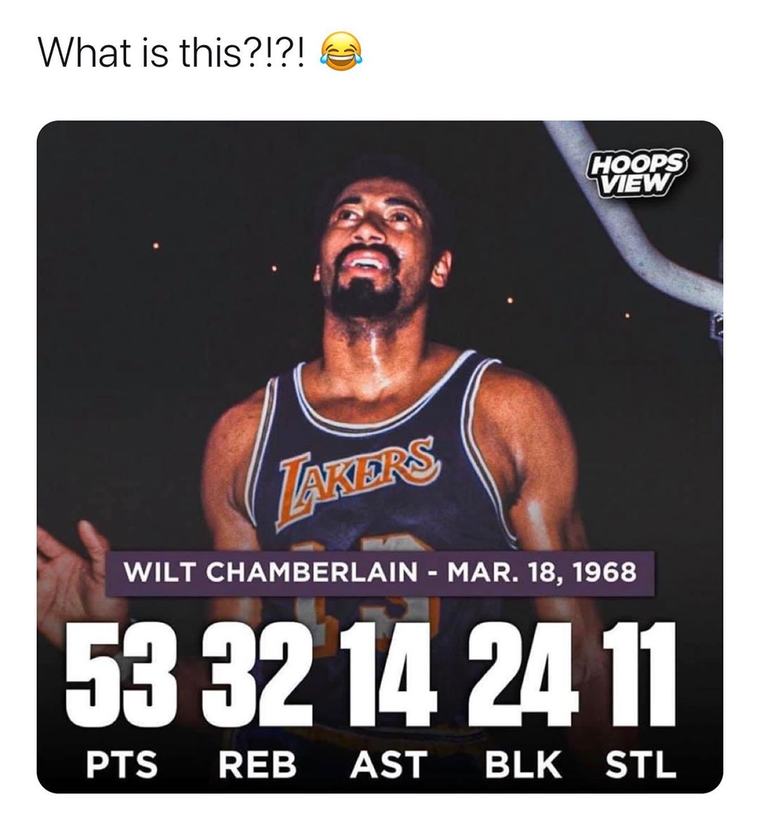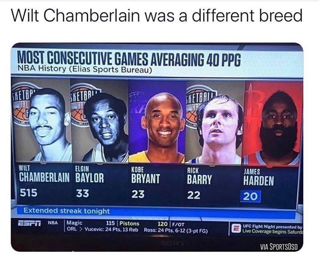 (威尔特-张伯伦过去真的是不同的物种 注:图片为连续场均40+场次)