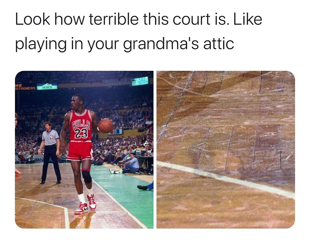 (看看那时的地板有多糟糕,看上去就像在祖母的阁楼里打球)