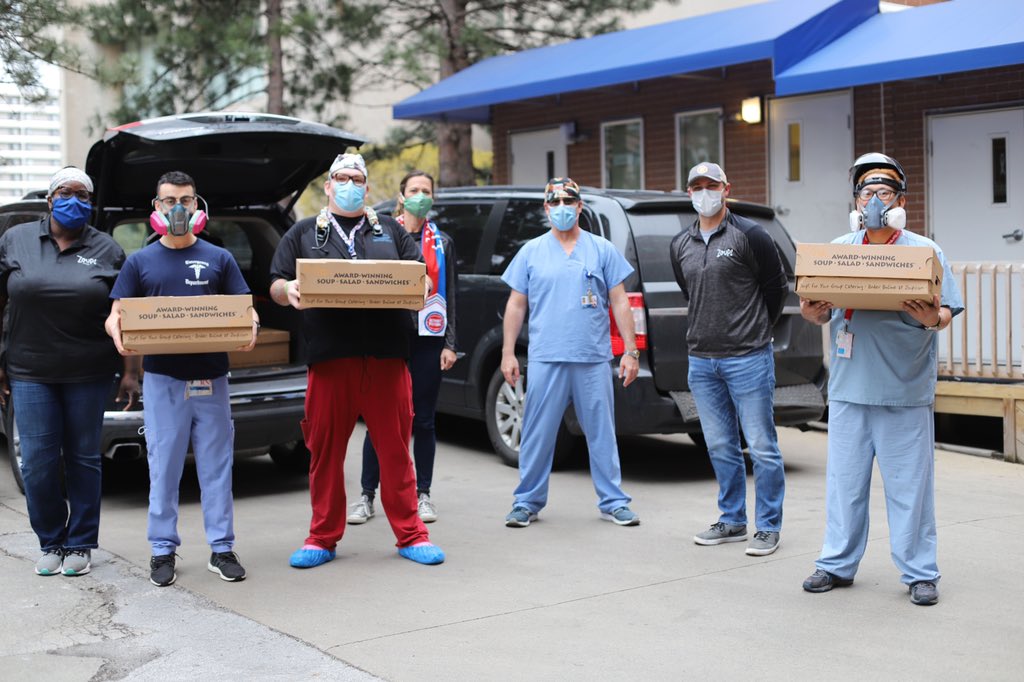 “很高兴能够与@ZoupEatery合作,为Henry Ford News医院的夜班护士和急诊工作者送去食物!为了感谢他们为我们所做的一切表达我的一点心意。团结一致,保持坚强!”配文写道。