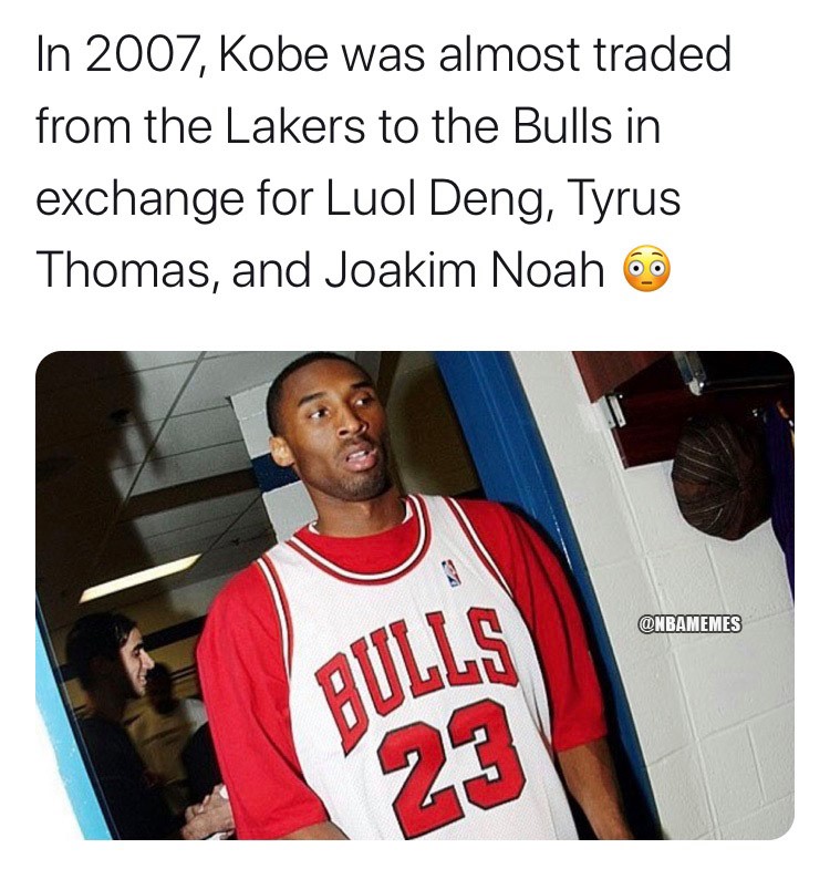 (2007年,科比差点被湖人交易到公牛换取罗尔-邓、泰鲁斯-托马斯和乔金-诺阿)