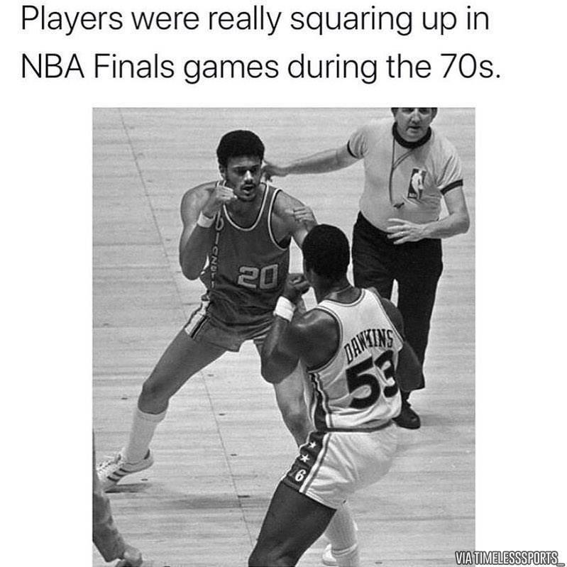 (球员在70年代的NBA总决赛上真的会摆好架势打架)
