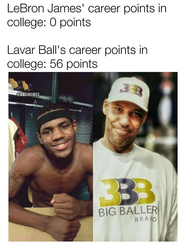 (勒布朗-詹姆斯的大学生涯得分:0分  球爹的大学生涯得分:56分)