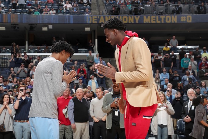 4月29日 今天,灰熊官方发布了一组贾-莫兰特和小贾伦-杰克逊本赛季的合影图片。