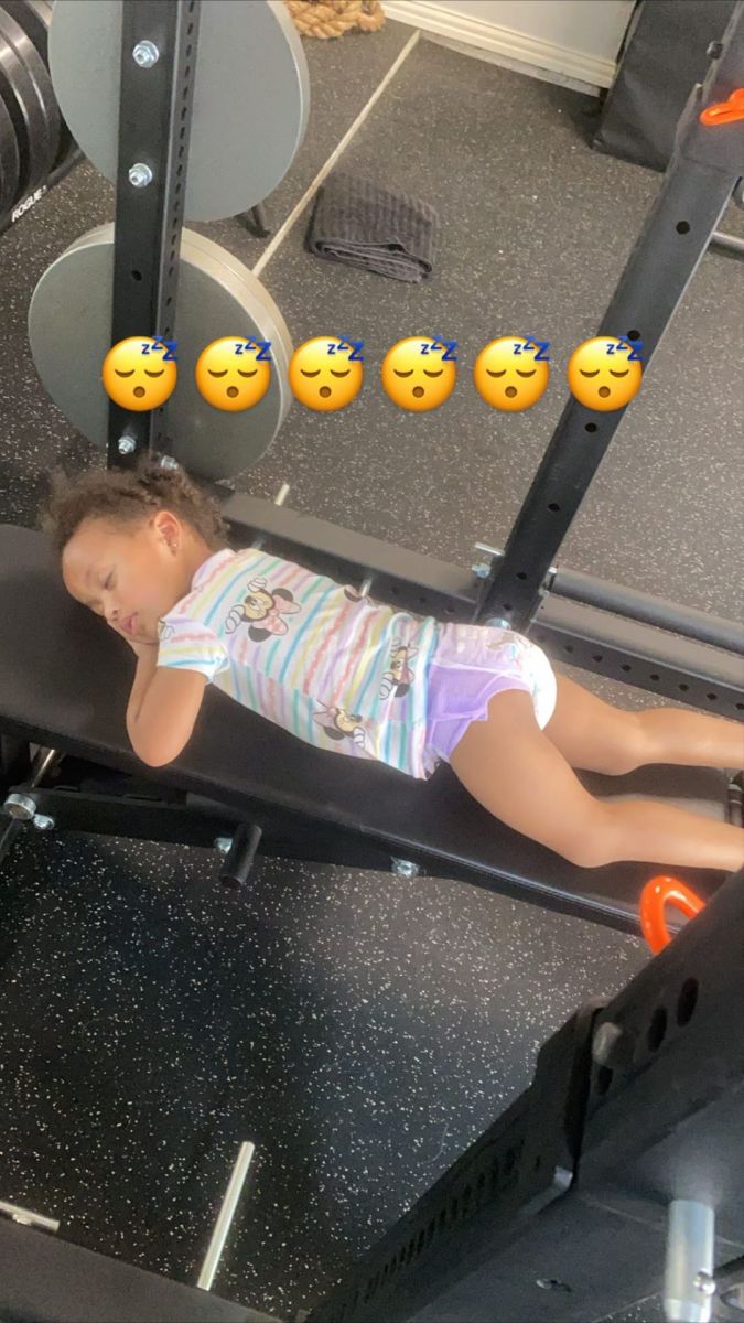 5月17日 今日,国王后卫巴迪-希尔德更新了个人Instagram Story,晒出自己的女儿在自己的训练器械上安详熟睡的照片。