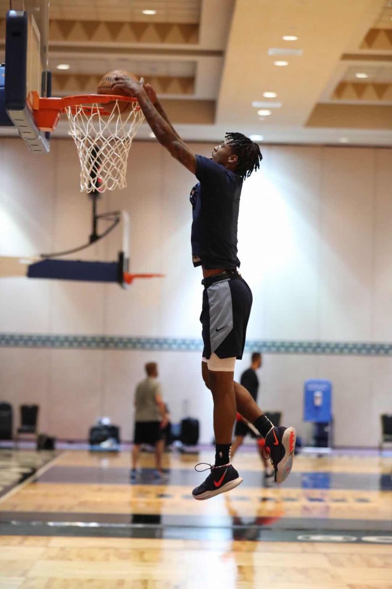 7月14日 灰熊官方推特今日晒出了贾-莫兰特扣篮的照片。