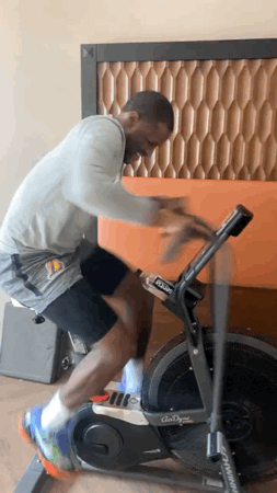韦特斯晒出了他在室内进行动感单车训练的视频。