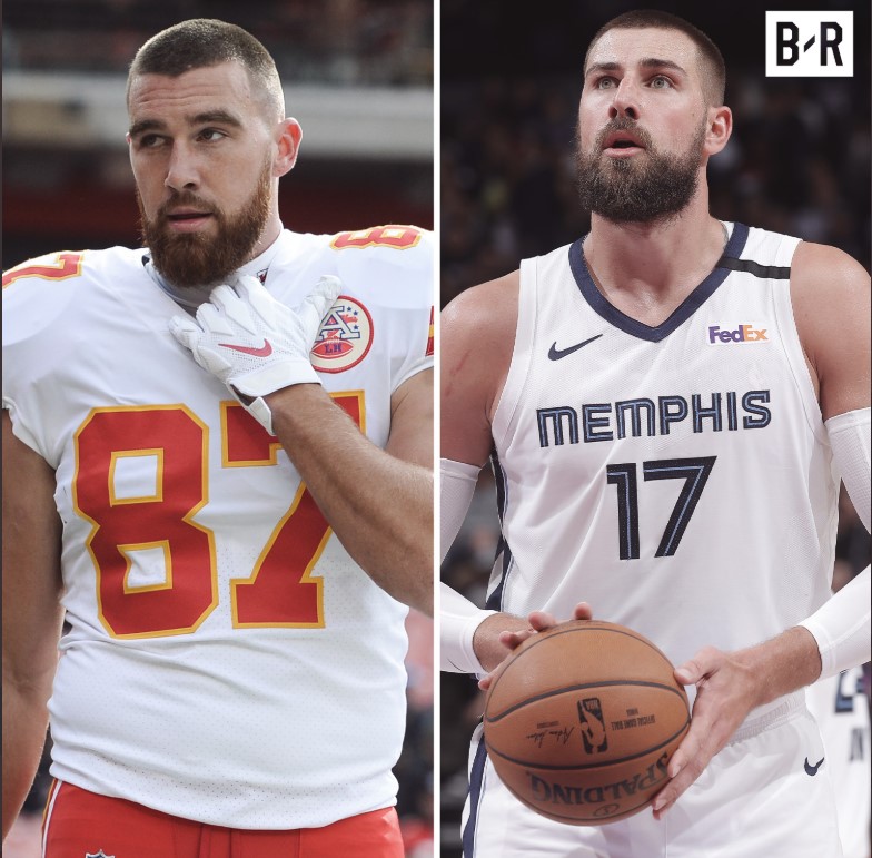 7月15日 今天,篮球媒体Bleacher Report更新推特,晒出灰熊中锋约纳斯-瓦兰丘纳斯与NFL球星Travis Kelce的对比照。