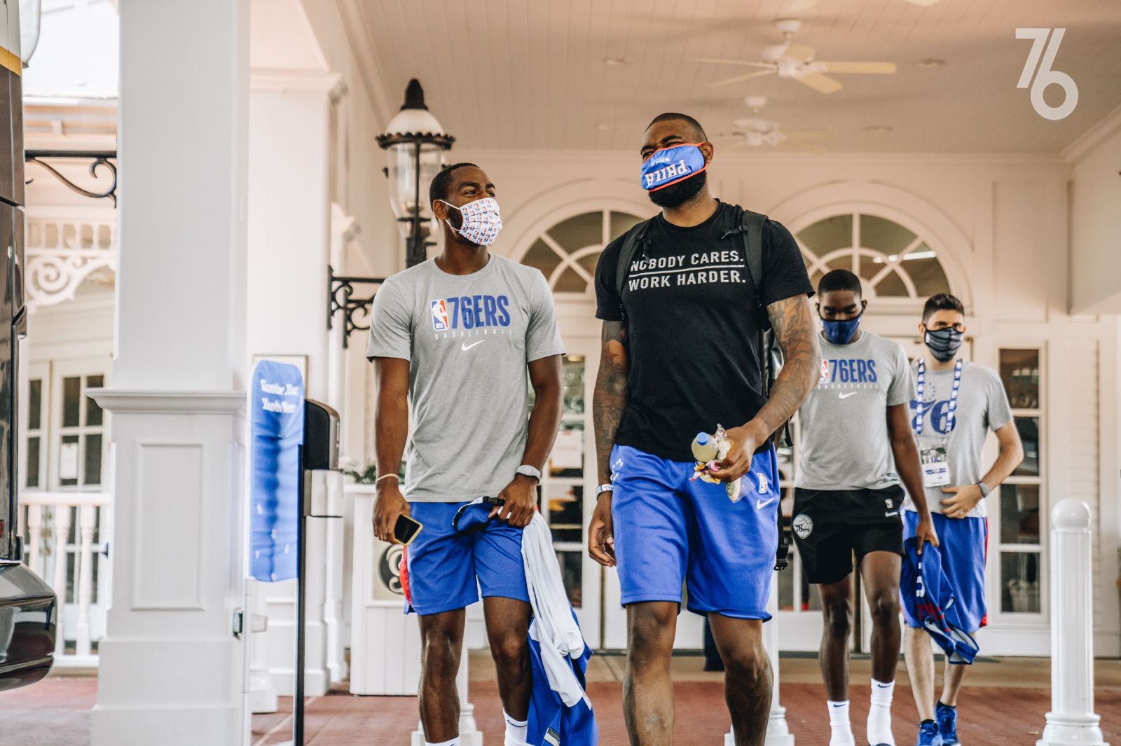 7月17日 今日,76人官推晒出众球员面戴口罩的个人帅照(见新闻配图)。