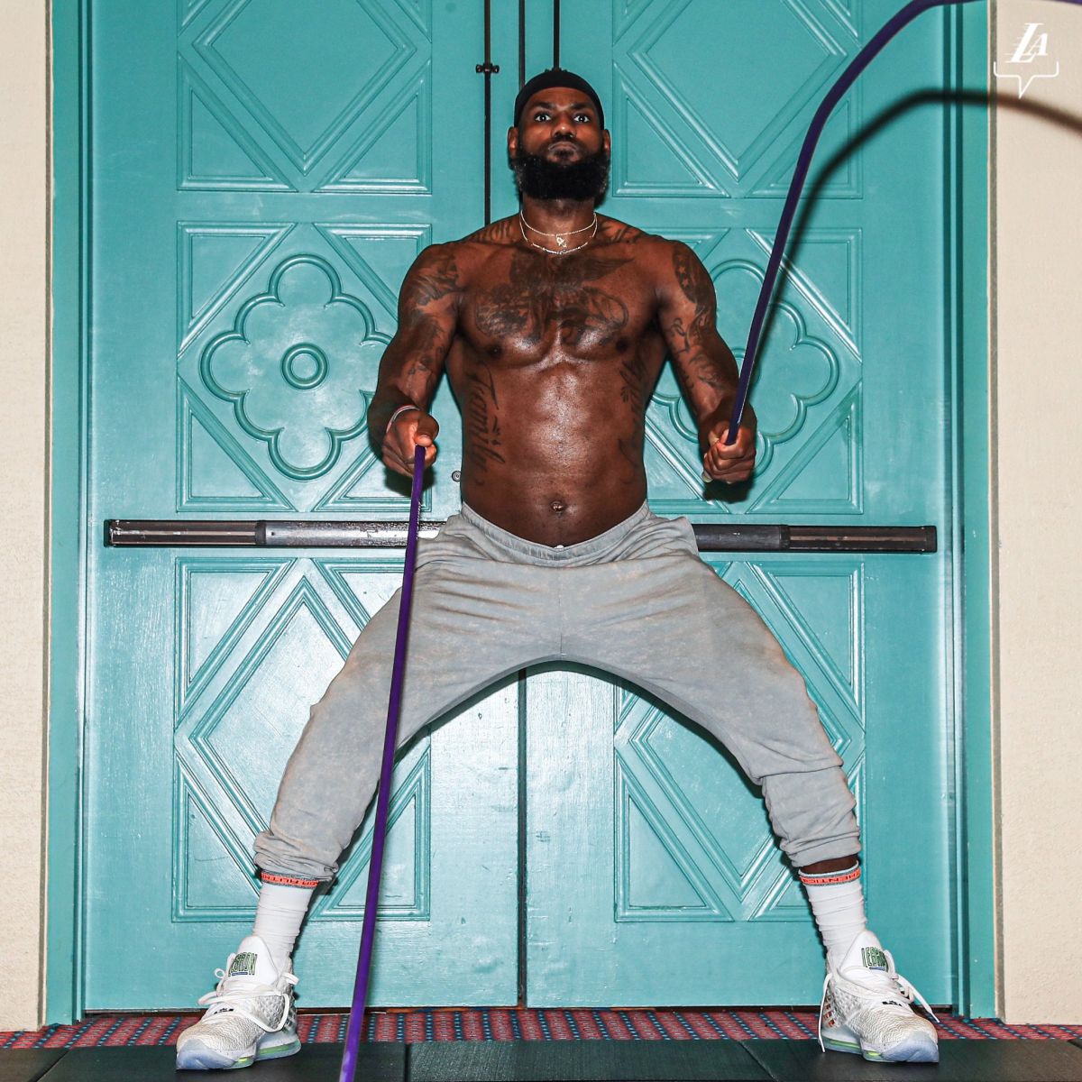 7月19日 湖人官方推特今日发布一张前锋勒布朗-詹姆斯的训练照。