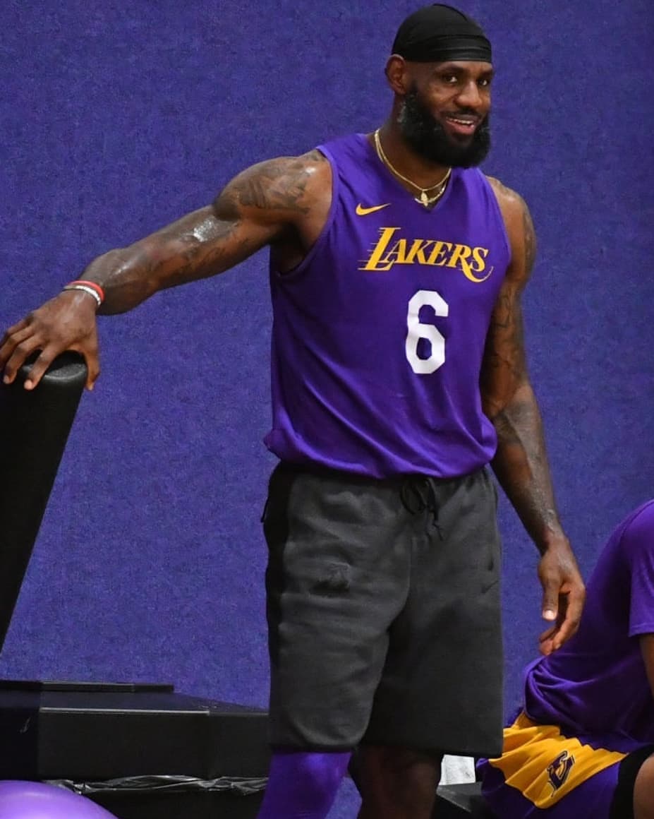 7月21日 湖人前锋勒布朗-詹姆斯的Instagram粉丝账号teamjamesfamily今日发布一组詹姆斯的训练及采访照。